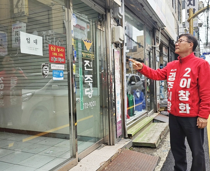 [시사코리아저널=경북취재본부] 국민의힘 이창화 경주시장 예비후보가 3일 경주 황오동의 빈집과 빈 점포 밀집 지역을 방문해 현장을 점검하고, 침체된 구도심을 베이커리 특화거리인 이른바 '빵리단길'로 재생하겠다는 파격적인 청사진을 내놓았다.
