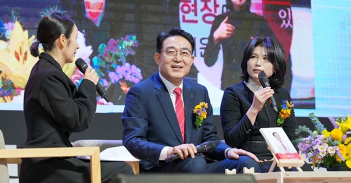 | 차석호 전 진주시 부시장이 지난 1월 17일 출판기념회에서 저자와의 대화를 진행하고 있다. /자료사진 |