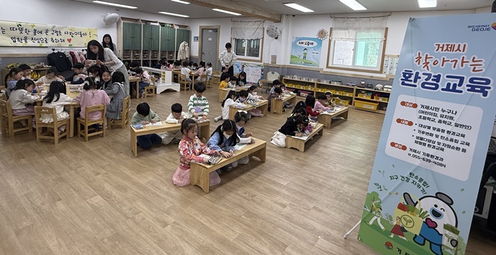 '거제시 찾아가는 환경교육'은 환경교육 전문 강사가 어린이집, 유치원, 학교 및 각종 시설로 직접 찾아가 탄소중립, 기후변화, 자원순환, 생물다양성 등 대상별 맞춤형 프로그램을 제공하는 사업이다.