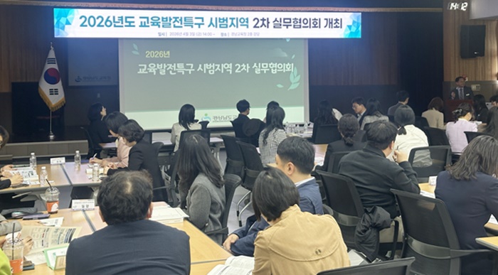 [시사코리아저널=정종민 선임기자] 경남도교육청은 3일 본청 대강당에서 ‘2026년 경남형 교육발전특구 시범지역’으로 지정된 14개 지역의 교육지원청, 경남도청, 기초지자체 등 담당자 50여 명이 참여하는 실무협의회를 열었다.