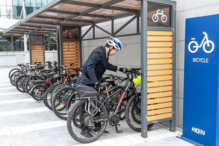 | 한국남동발전 직원들이 자전거를 타고 출근하면서 자전거 주차장 이용률도 높아졌다. |