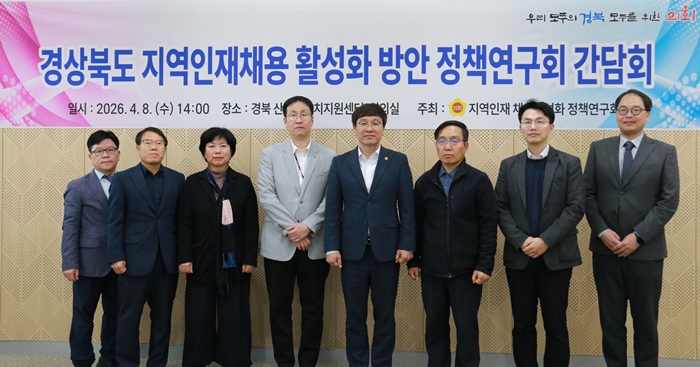 [시사코리아저널=김연학 기자] 경북도의회 '지역인재채용 활성화 정책 연구회'(대표 조용진 의원)는 지난 8일 경북 산학연 유치지원센터 회의실에서 ‘지역인재채용 활성화 정책연구회 간담회’를 개최했다.