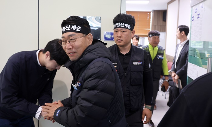 상견례 직후 이민재 대표는 "센터 집회 과정에서 사망한 조합원에 대해 매우 안타까운 마음"이라며 "유족에게 깊은 위로의 마음을 전하고 싶다"고 고개를 숙였다.
