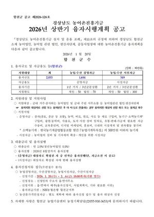 합천군, 경상남도 농어촌진흥기금 융자 신청 시작