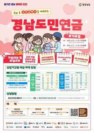 '경남도민연금' 2만589명 추가 모집···1·2차 소득별 구분 신청