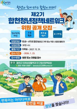 합천군, 제2기 ‘합천청년정책네트워크’ 위원 공개 모집